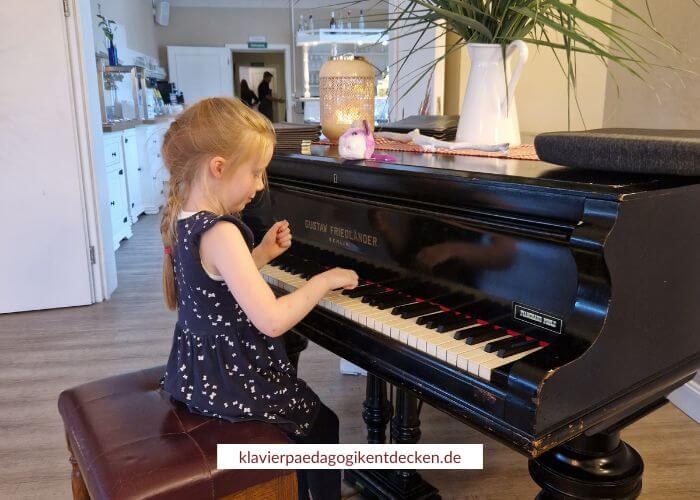 Anschließend will unsere Tochter auch spielen. Seit einem halben Jahr hat sie nicht mehr am Klavier gesessen… Ich zeige ihr nochmal das Stück auf den schwarzen Tasten und sie legt los. Ich freue mich riesig, dass die Mädchen meine Kleine mal wieder ans Instrument gebracht haben! Ich bin mir ziemlich sicher, dass sie sonst nicht gespielt hätte…
