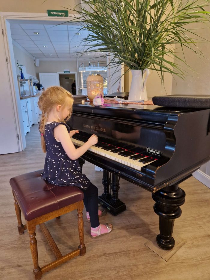 Momentan sitzt sie immer wieder am Klavier und improvisiert mit dem Anfang von „Morgen kommt der Weihnachtsmann“. Sie kommt auf tolle Ideen und benutzt das Pedal oder unterschiedliche Lagen.