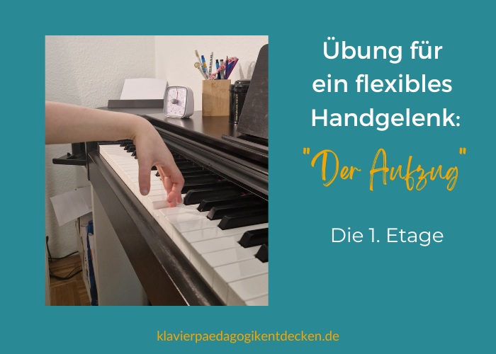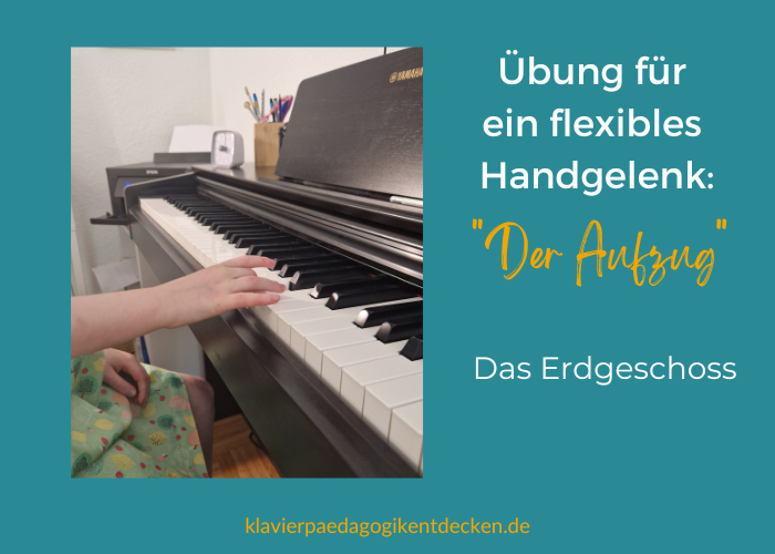 So wird das Handgelenk dann eingesetzt: Zu Beginn eines jeden Anschlags befindet es sich im Erdgeschoss und hebt sich danach in die erste Etage. Anschließend fällt das Handgelenk ohne einen neuen Anschlag sofort zurück in das Erdgeschoss. Während das Heben meistens recht gut gelingt, bereitet das geräuschlose Fallen vielen Schülern zuerst Probleme. Kleine auswendig gespielte Tonfolgen können dabei helfen.